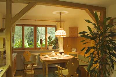 Die gemütliche Eßecke lädt zum gemeinsamen Mahl in die Wohnküche ein.